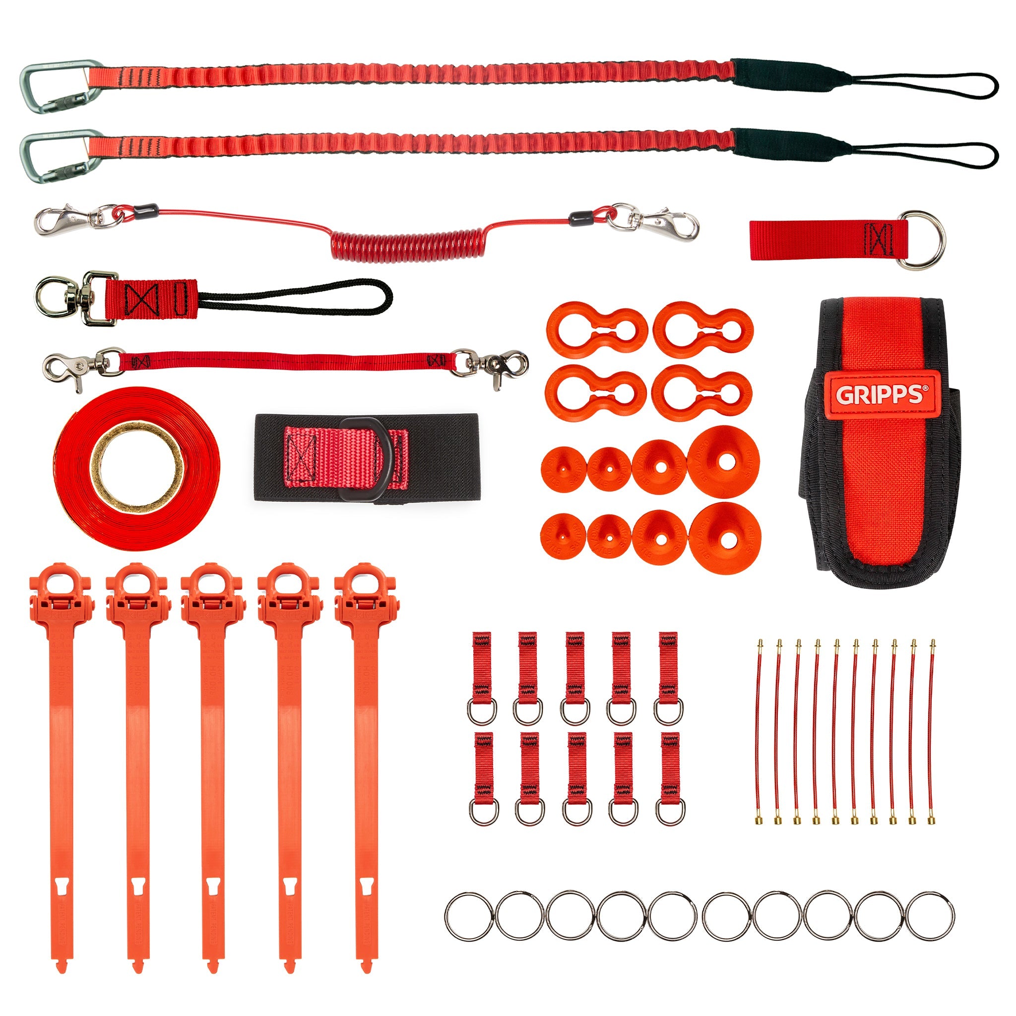 Tether a comprehensive selection of power tools, spanners, wrenches, and other equipment used by mechanical fitters with the GRIPPS® Mechanical Fitters Trade Kit, featuring anchoring options to the waist, wrist, or external structures such as rails.